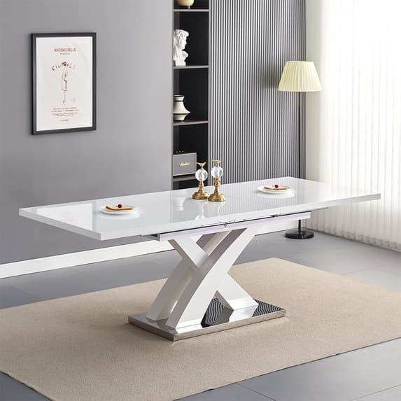 Axton Large Extending White Dining Table 6 Irvine Champagne Chairs