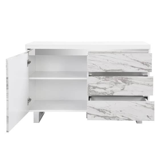 Swazi Filo Effect Small Sideboard With 1 Door 3 Drawer In White